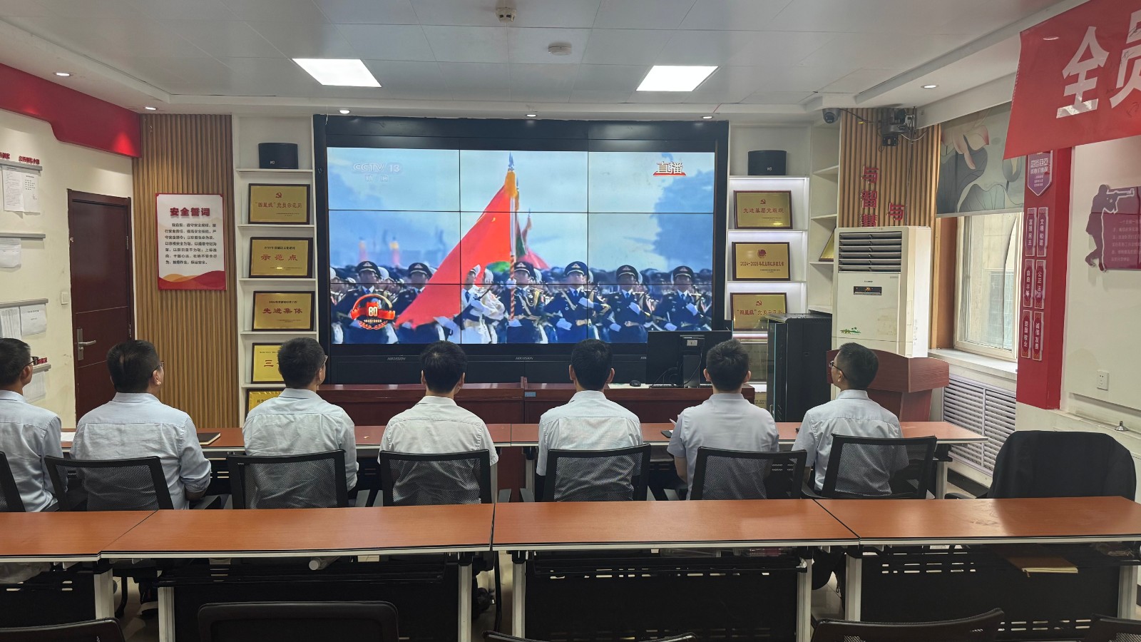 歷史燭照未來,精神永續(xù)傳承。為深切緬懷在抗日戰(zhàn)爭中英勇獻(xiàn)身的革命先烈,大力弘揚(yáng)偉大的抗戰(zhàn)精神,引導(dǎo)全體黨員、職工銘記光輝歷史、堅(jiān)定理想信念、強(qiáng)化責(zé)任擔(dān)當(dāng),9月3日,機(jī)運(yùn)工區(qū)黨支部組織開展了“銘記歷史偉業(yè),傳承紅色基因”主題黨日活動(dòng),組織全體黨員集中觀看紀(jì)念中國人民抗日戰(zhàn)爭暨世界反法西斯戰(zhàn)爭勝利80周年閱兵儀式現(xiàn)場直播。上午九時(shí)整,機(jī)運(yùn)工區(qū)全體黨懷著無比崇敬與激動(dòng)的心情,目光齊聚屏幕。伴隨著激昂雄壯的國歌奏響,鮮艷的五星紅旗在天安門廣場冉冉升起,大家心潮澎湃,肅然起敬。隨后,規(guī)模宏大、氣勢(shì)磅礴的閱兵式正式開始。屏幕上,一個(gè)個(gè)整齊劃一、威武雄壯的徒步方隊(duì),邁著鏗鏘有力、撼人心魄的步伐走過檢閱臺(tái),堅(jiān)毅的眼神、挺拔的身姿,充分展現(xiàn)了新時(shí)代軍人聽黨指揮的忠誠品格和能打勝仗的過硬本領(lǐng);一列列代表著國家科技實(shí)力與國防現(xiàn)代化建設(shè)最新成果的裝備方隊(duì),鐵流滾滾,氣勢(shì)如虹,尖端武器依次亮相,彰顯了捍衛(wèi)國家主權(quán)、安全、發(fā)展利益的堅(jiān)定決心與強(qiáng)大能力;雄鷹呼嘯,劃破長空,戰(zhàn)機(jī)編隊(duì)以精準(zhǔn)的隊(duì)形和磅礴的氣勢(shì)接受檢閱,描繪出壯美的藍(lán)天畫卷,宣示著捍衛(wèi)國家領(lǐng)空安全的鋼鐵意志。整個(gè)閱兵過程,秩序井然、威武雄壯、氣勢(shì)恢宏,生動(dòng)詮釋了人民軍隊(duì)“聽黨指揮、能打勝仗、作風(fēng)優(yōu)良”的強(qiáng)軍目標(biāo),全方位展示了在黨的堅(jiān)強(qiáng)領(lǐng)導(dǎo)下,國家日益強(qiáng)大的綜合國力和維護(hù)世界和平的堅(jiān)定信念。屏幕前,黨員們?nèi)褙炞ⅲ瑹o不被這震撼人心的場面所感染,民族自豪感與榮譽(yù)感油然而生,現(xiàn)場不時(shí)響起由衷的贊嘆和熱烈的掌聲。通過本次“銘記歷史偉業(yè),傳承紅色基因”主題黨日活動(dòng),機(jī)運(yùn)工區(qū)黨支部全體黨員經(jīng)歷了一次深刻的精神淬煉與思想升華。大家的歷史使命感、民族自豪感、崗位責(zé)任感得到顯著增強(qiáng),紛紛表示以更加飽滿昂揚(yáng)的精神狀態(tài)、更加求真務(wù)實(shí)的工作作風(fēng)、更加開拓創(chuàng)新的進(jìn)取意識(shí),恪盡職守,銳意進(jìn)取,全力以赴保障原煤運(yùn)輸安全高效,為工區(qū)及公司的持續(xù)高質(zhì)量發(fā)展貢獻(xiàn)全部力量!